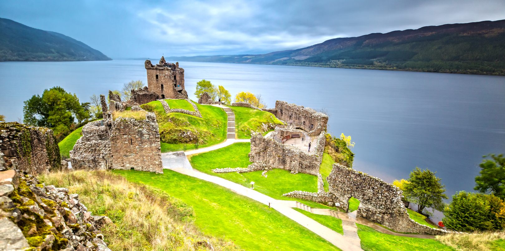 What sets Urquhart Castle apart from other Scottish ruins is its spectacular location on the banks of Loch Ness. The castle’s strategic position offers stunning views over the loch and the surrounding Highlands. Visitors can climb the castle’s tower for panoramic views of Loch Ness, a place often linked with the legend of the Loch Ness Monster. The combination of the ruins, the loch, and the mythical lore adds to the mystery and allure of Urquhart Castle.