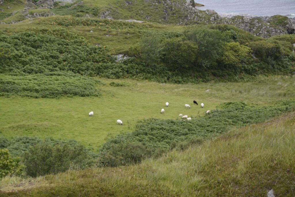 Getting to the start of the walk is simple enough – just follow the road past the excellent Glenuig Inn and keep going until it stops, where you’ll find a small parking area. There were quite a few sheep roaming around when we arrived, so we clipped the dog on the lead and followed the rough path in what we hoped was vaguely the right direction.